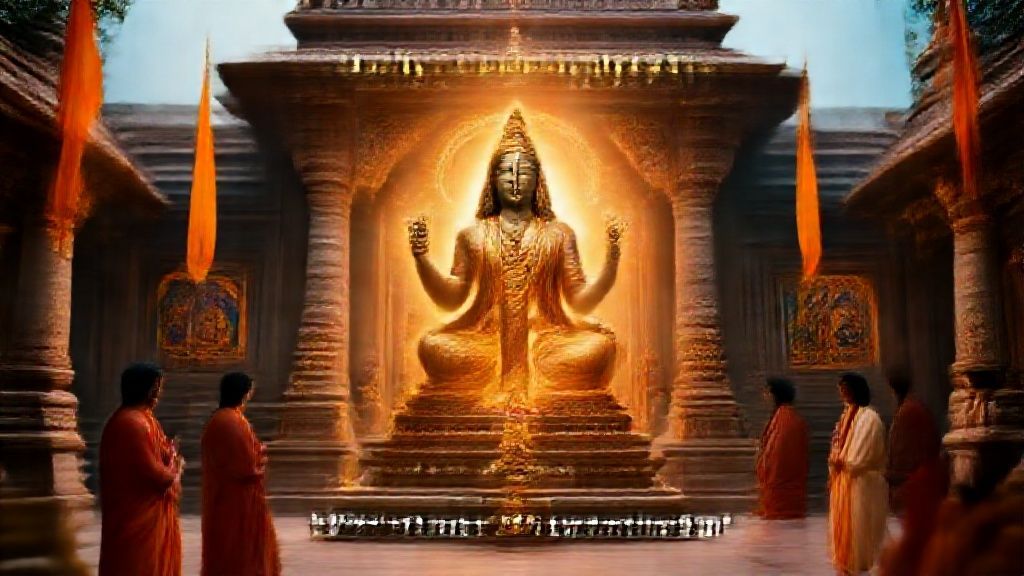 6. Dhyana (Meditation): As you chant, visualize the deity in their blissful form and feel their presence showering blessings upon you.